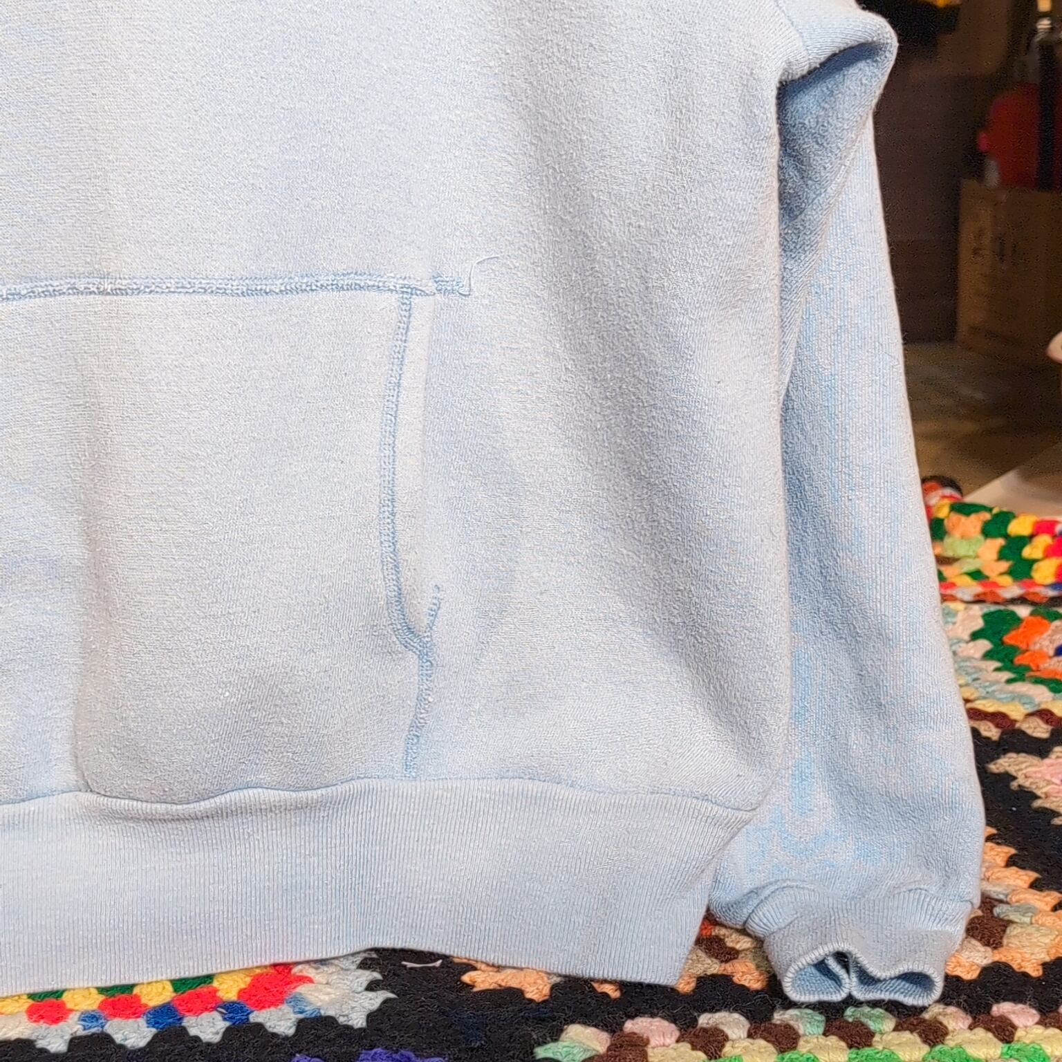 Mぐらいのジャストサイズ、淡いブルーがなかなかにいいのと背面のお名前ワッペンもまぁるいフォントが可愛らしい。脇下のガゼット、ちょっと右寄りで付いたポケットもチャームポイント。