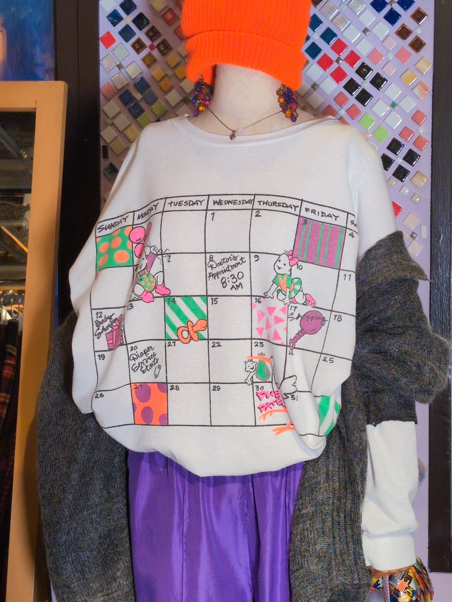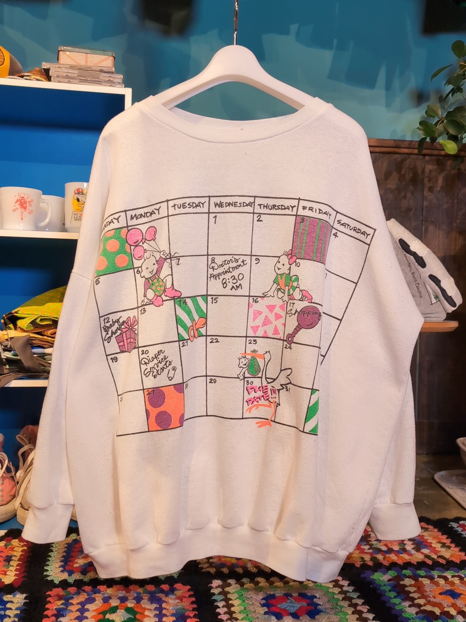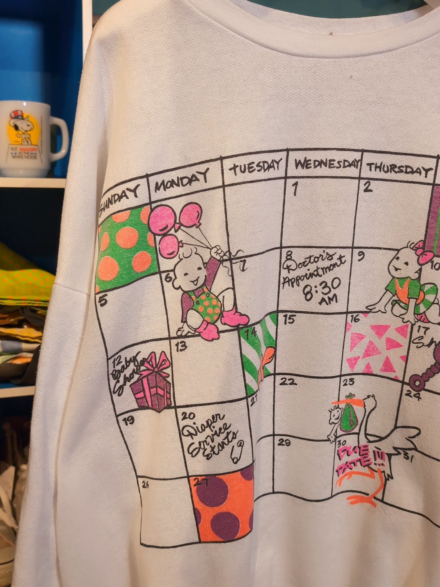カレンダーのプリントに予定や赤ちゃんのイラストがとってもラブリー。使われているカラーはビビッドでちょっとユニークな雰囲気も◎