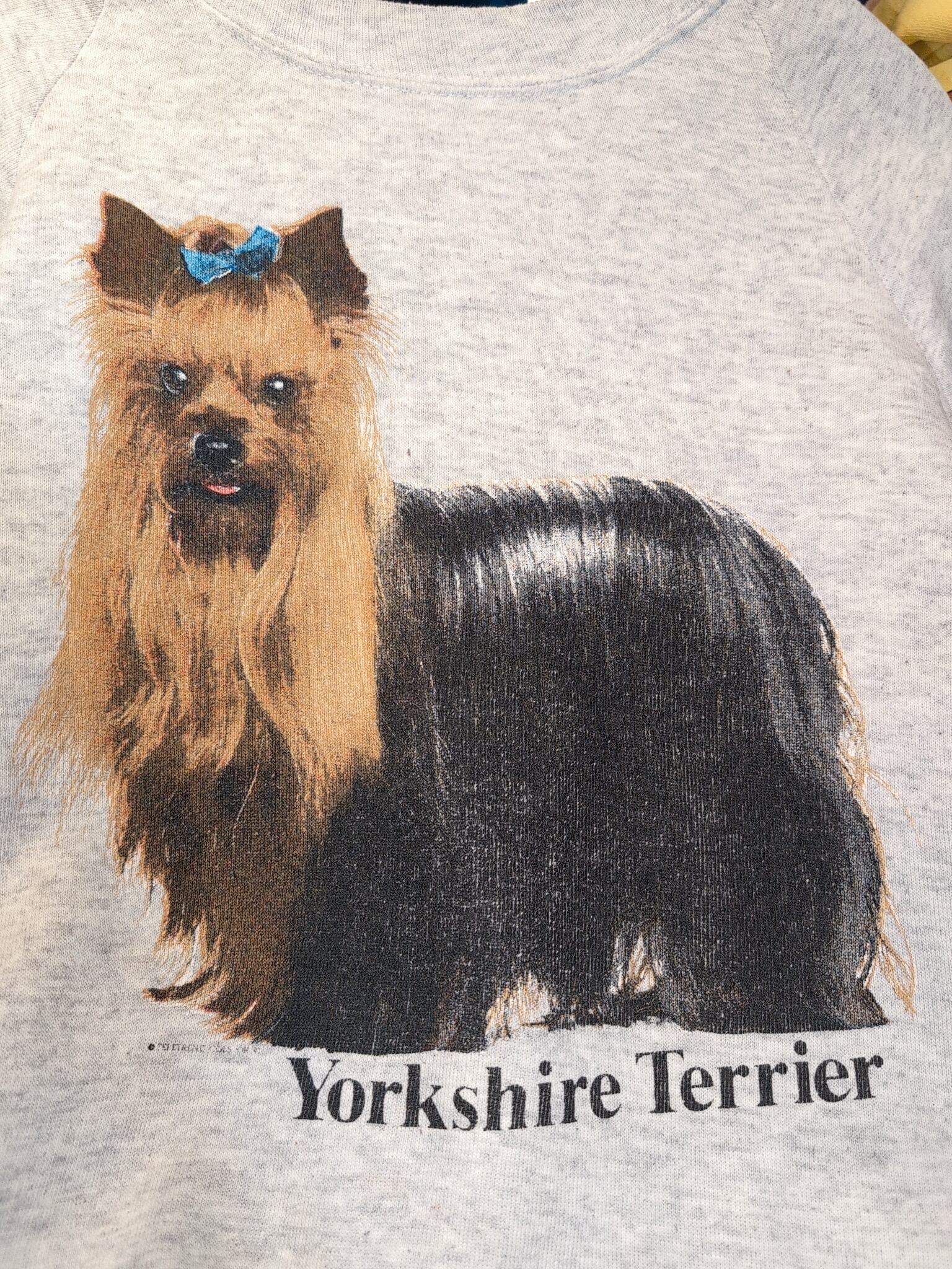 わんちゃんのなかで個人的に憧れがあるヨークシャーテリア。サラサラの毛が素敵…♡ほんでもってリボンで結わっているのも可愛い。サイズはMちょい大きめで着やすく、襟元の空き具合もいい広さです。