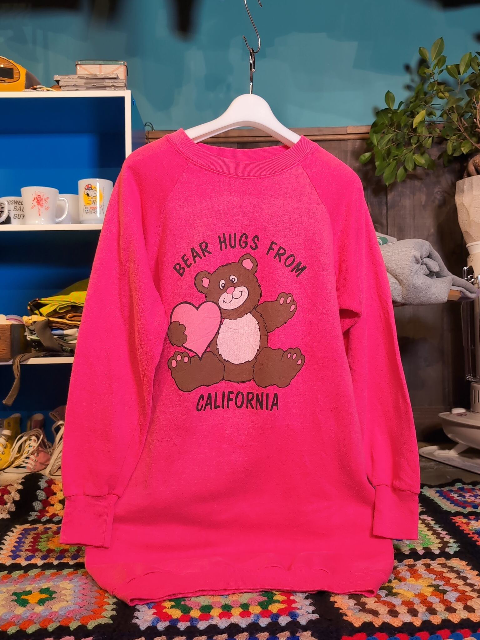 あざやかなベースカラーと、ハグを供給してくれるラブリーなくまちゃんがかわいい。謎の着丈の長さでお尻もすっぽり隠れる丈。身幅がその分広いわけではないので裾で溜まらせて着れば通常のスウェットと何ら変わらずに着らます。