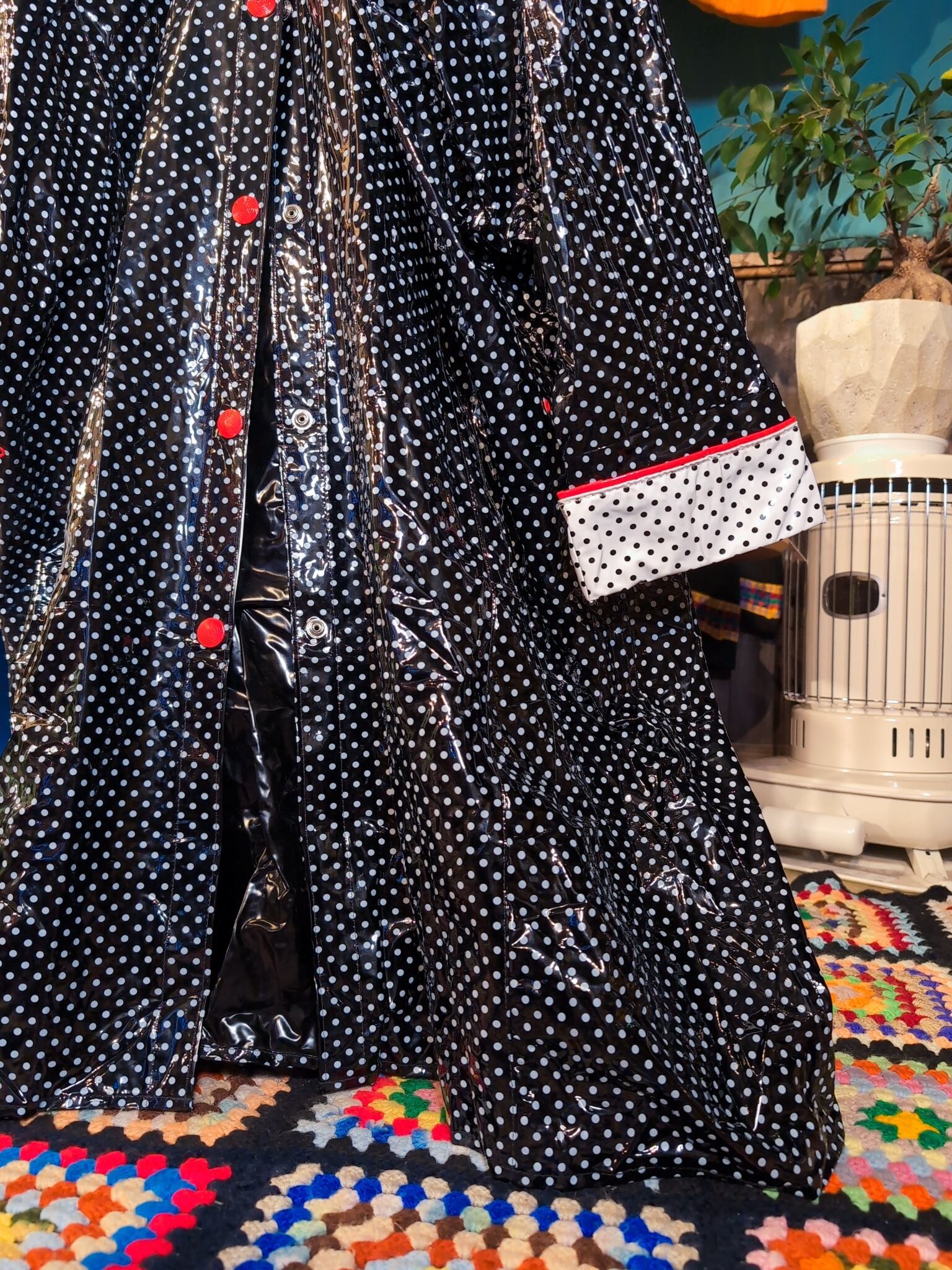 細かいドット柄がレトロで可愛らしい一着です。雨の日や雪の日のドット柄はお天気とおそろいな感じがして好きです。