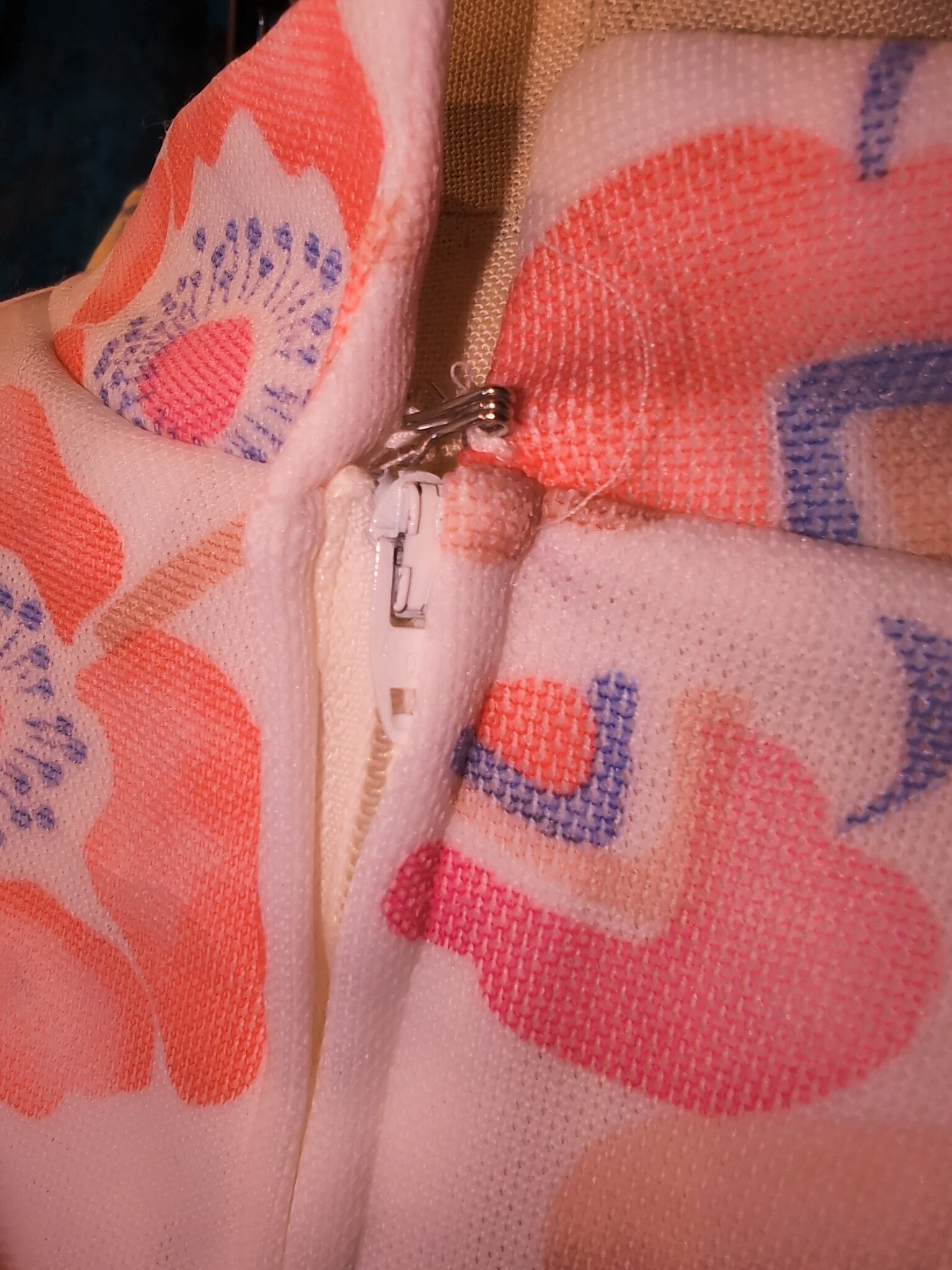 大好きな古いポリ素材のワンピース。アジアな雰囲気のお花がらがふよふよ漂うテキスタイルがとっても素敵。