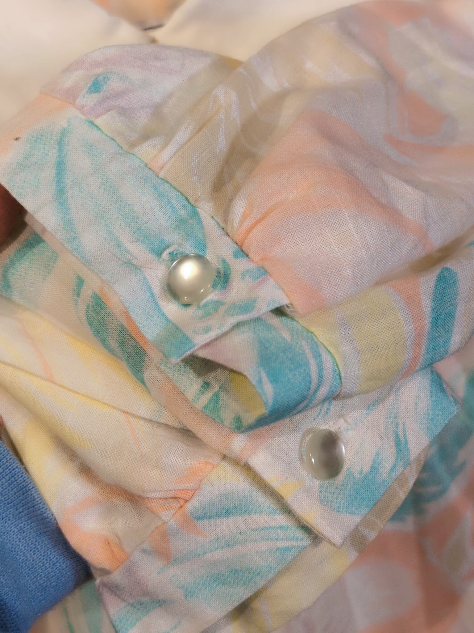 色味は、ホワイト×オレンジ×ブルー。やわらかなパステルカラーがかわいらしい雰囲気です。襟部分が大きめでとってもロマンティック♡